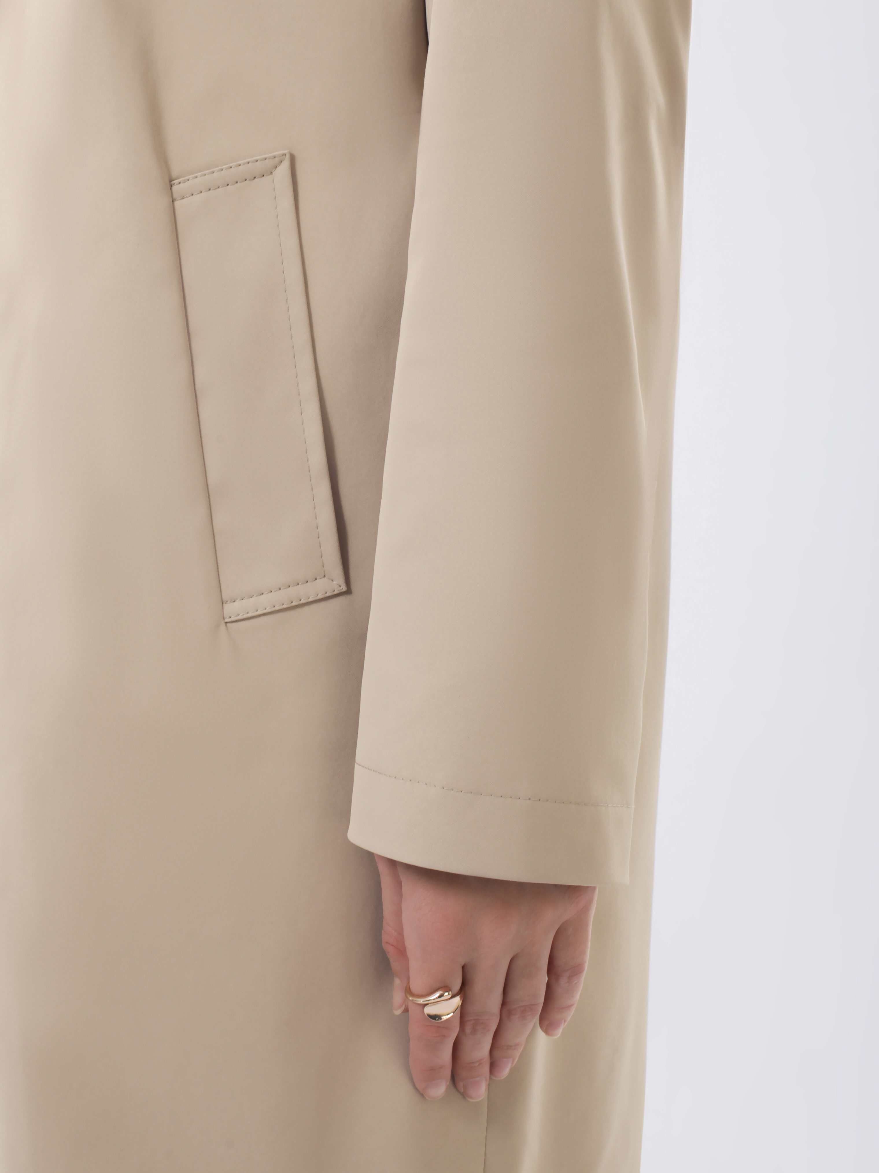 Хлопковый плащ декорирован отделочными строчками. Пояс в комплекте.